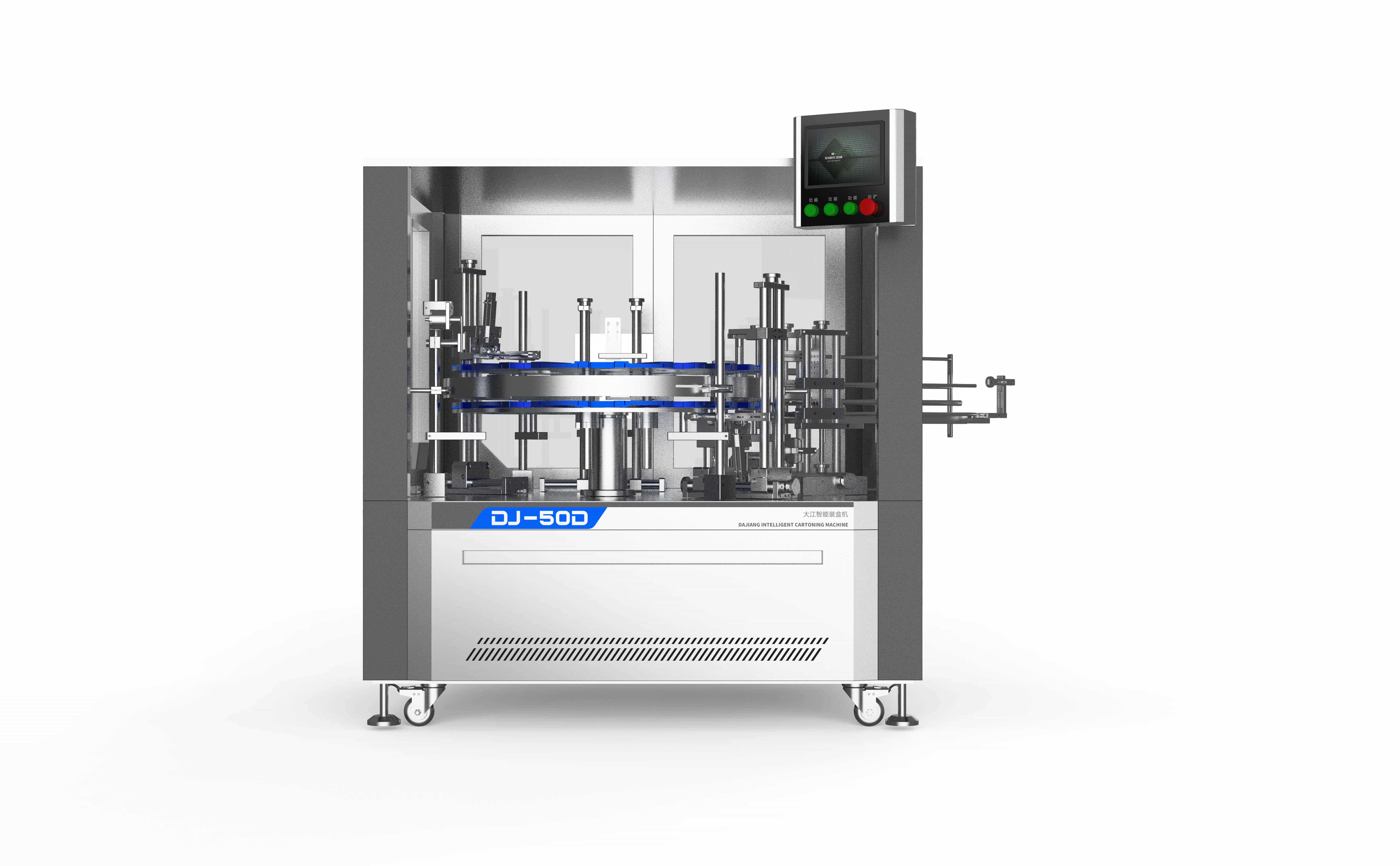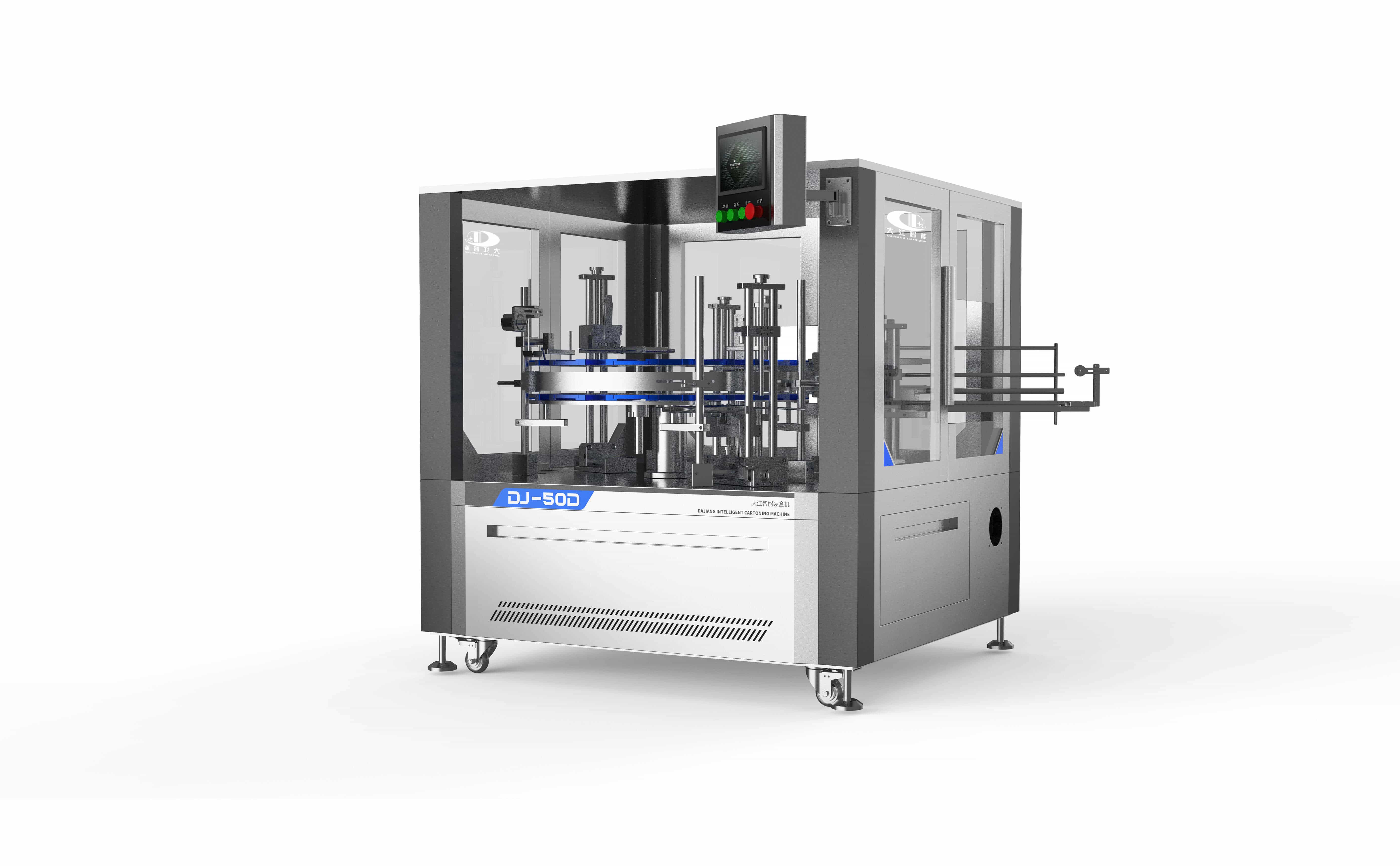 DJ-50多功能立式裝盒機適應:制藥行業,食品行業,化妝品行業,電子行業紙盒立式自動成型包裝。